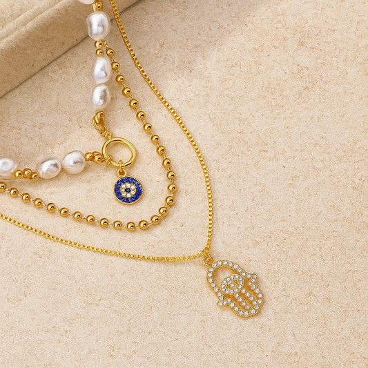 Evil Eye Charms Layered Necklace
