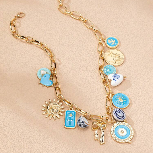 Blue Bold & Gold Charms Necklace